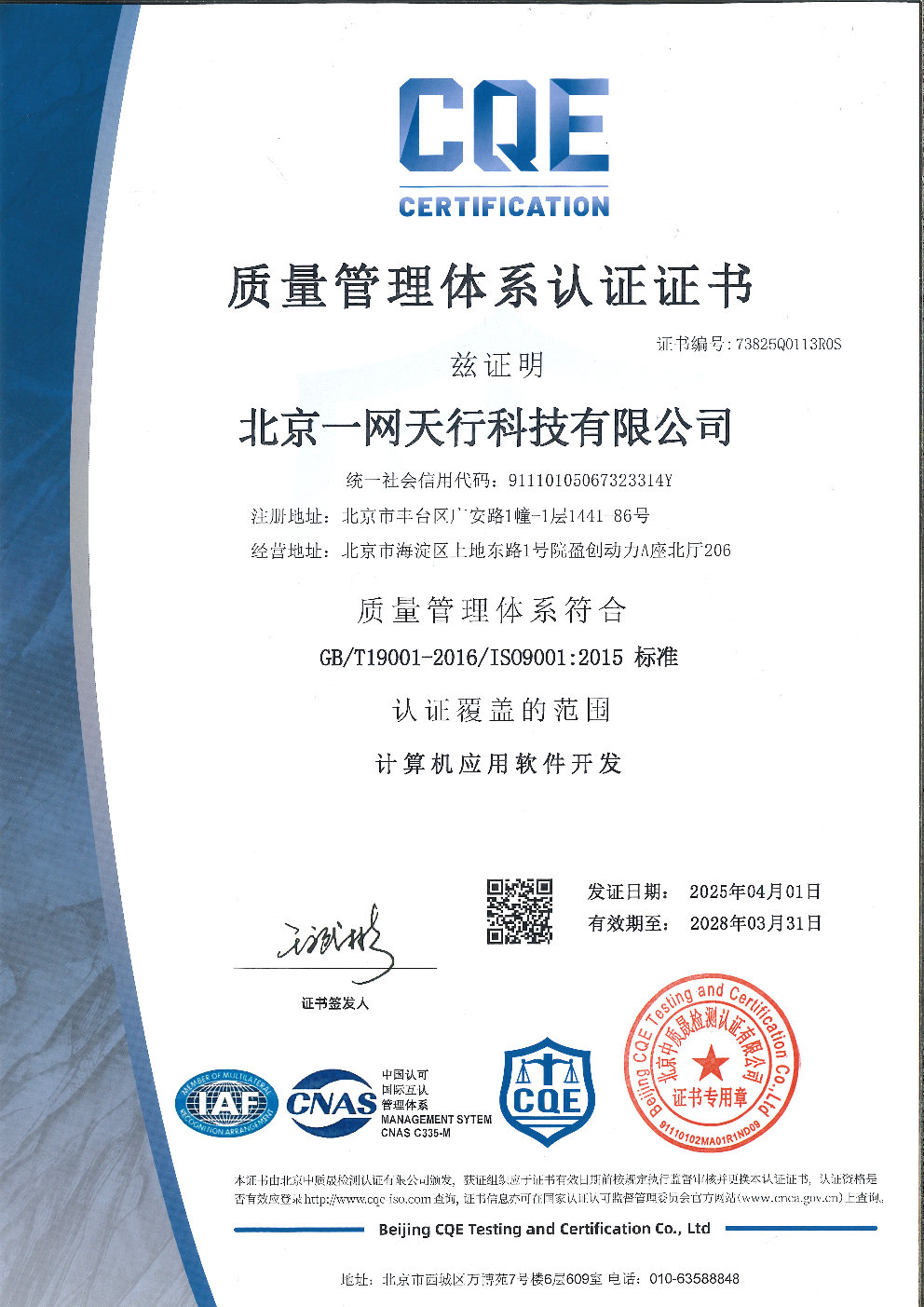 近期,我司北京一網(wǎng)天行科技有限公司順利通過IOS9001質(zhì)量管理體系認(rèn)證,成功獲得《IOS9001質(zhì)量管理體系認(rèn)證證書》。這標(biāo)志著我司質(zhì)量管理體系在標(biāo)準(zhǔn)化、規(guī)范化、程序化方面邁上新臺(tái)階,為公司的長遠(yuǎn)穩(wěn)步發(fā)展奠定了堅(jiān)實(shí)基礎(chǔ)。